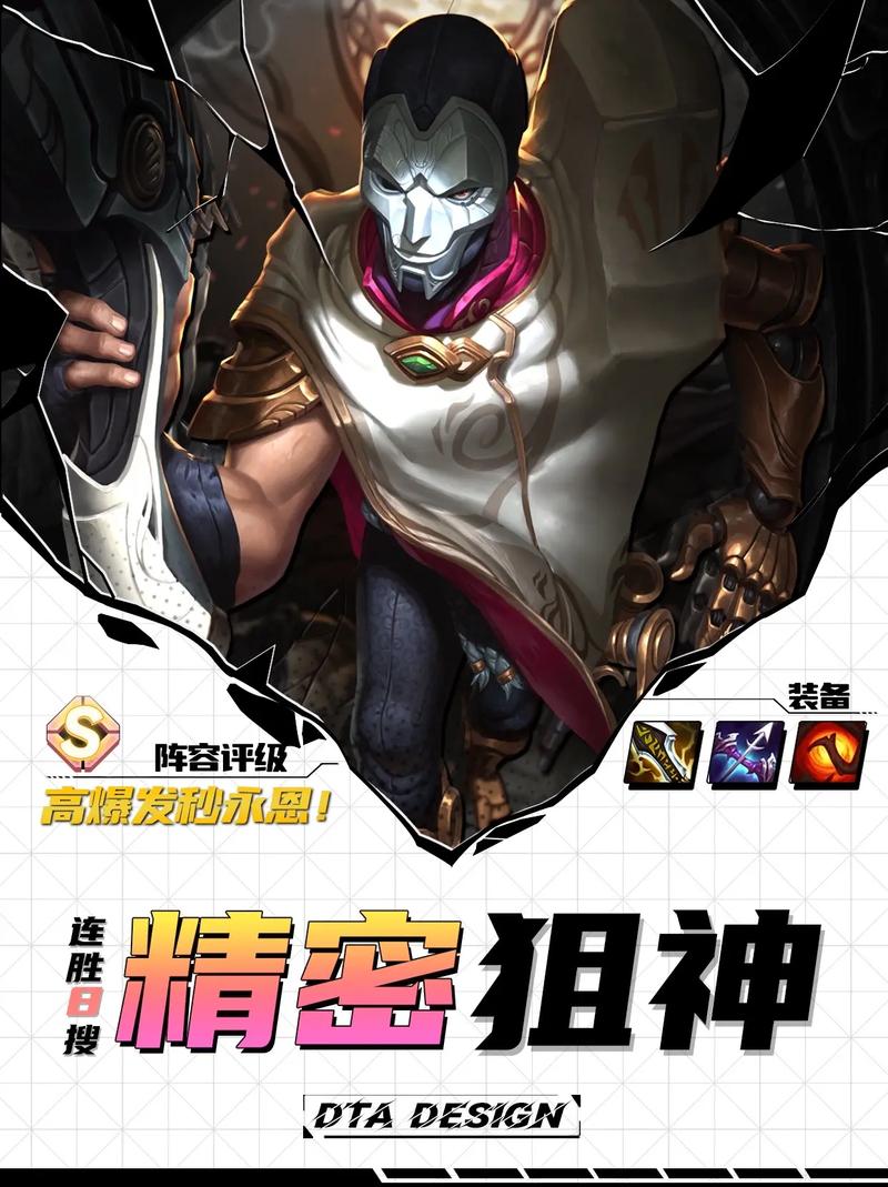 〖Three〗、装备分配:反曲弓为开局首选,灵活适应多种阵容。初期可选取两保镖加两刺客过渡,或四保镖加两狙神。优先考虑连胜或连败策略,注意经济用于D牌。玩法策略:连败打法于3-6人口拉7,D牌至30左右,确保获得烬、发条、两星日女与两星女枪,存钱至4-2拉8,抢牌并升级装备。
