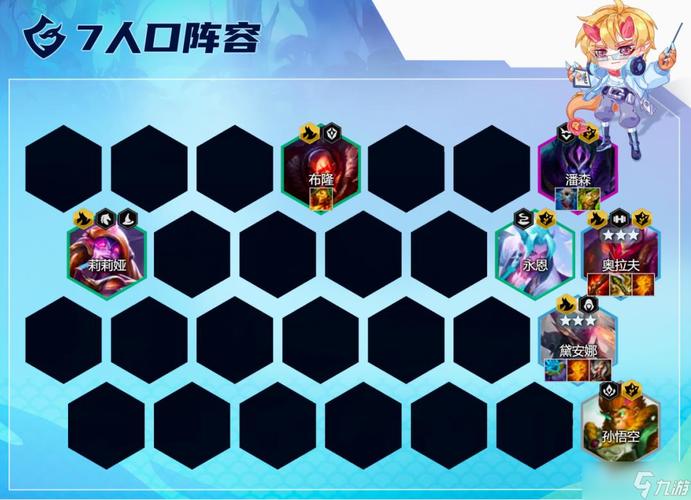 不死璐璐阵容的核心在于巧妙的英雄组合,包括虚空遁地兽-雷克塞、虚空恐惧-科加斯、南天之怒-嗜血猎手、仙灵女巫-璐璐、邪恶小法师-维嘉、青丘灵狐-九尾狐妖、狻猊之心-纳尔、齐天大圣-孙悟空。关键羁绊为4狂野、4斗士、3约德尔人、2虚空、3法师。阵容装备的选取对于璐璐的战斗力至关重要。