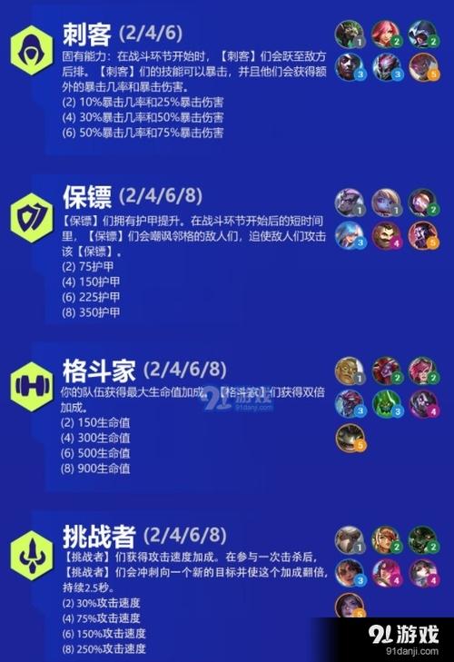 〖Three〗、金铲铲之战S4赛季已经上线,带来了全新的云顶之弈S4玩法。现在,让我们详细了解金铲铲之战中的所有羁绊效果。 宗师 在战斗开始时,宗师会降低敌方50%的攻击速度,持续3秒。 重装战士 重装战士们获得额外护甲,2级提供100护甲,4级提供200护甲,6级提供500护甲。