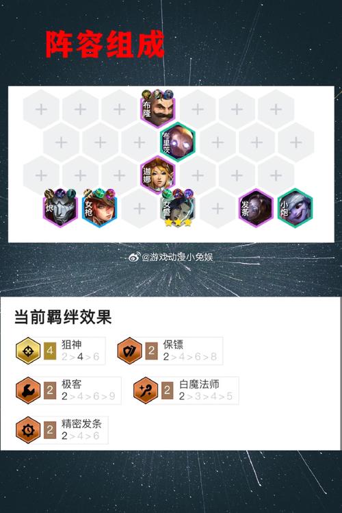 〖Five〗、巨龙巢穴能够提升团队的魔法抗性和护甲,而魔导师羁绊则可以显著增加团队的魔法伤害输出。这种羁绊组合非常适合面对那些高输出的物理伤害型队伍。建议搭配雷霆之源的安妮和冰霜女巫的丽莎。羁绊搭配技巧 在金铲铲双城之战中,羁绊的搭配是一门艺术。