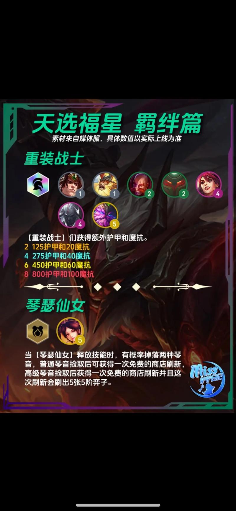 〖Three〗、总而言之,金铲铲之战龙羁绊效果是龙获得200魔法抗性,龙英雄有龙女、龙王、潘森3名。这是非常强的一个羁绊,相当于自带龙牙。