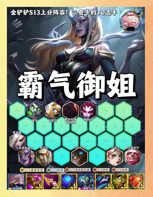 〖Two〗、金铲铲之战S9五费卡包括:瑞兹、赛恩、黑默丁格、阿狸、卑尔维斯、赛娜、亚托克斯和奎桑提。这些五费卡各有其独特的技能和羁绊效果。例如,黑默丁格能够对敌人投掷手雷,造成范围伤害和眩晕效果,同时还拥有炮台的特色玩法。赛娜则能发射巨型光束,对最远距离的敌人造成物理伤害,并为命中的友军提供护盾。