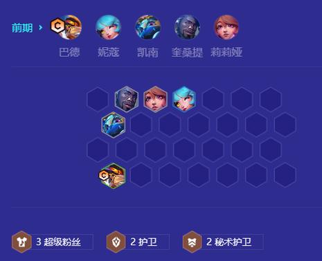 〖Four〗、传送门篇 多才多艺阵容 【萨勒芬妮+KDA】组合:7人羁绊,包含5法师、2秘术,优先考虑9人口补琴女,三星萨勒芬妮为关键,后期根据情况调整装备。【五杀刀锋天使】阵容:7人羁绊,3刀锋、3超粉,适合连败拉人口,天使三星后考虑上9人口补全羁绊。