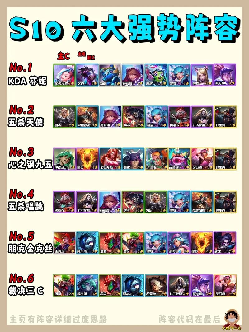 〖Two〗、从上到下:厄运小姐、蔚、塔姆、泽丽。海克斯推荐 海克斯强化方面狙神/心徽冕、狙神之巢、珠光莲花、 DD街区最优。其他精密/格斗心、直击弱点(主要要重伤)、三费之力、卢登的回声、并肩作战、蓝电池、后排之迅/坚、装备类和回复类海克斯的海克斯都可考虑。