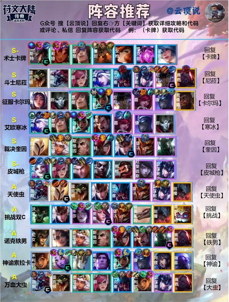 〖Two〗、阵容推荐:沙皇,狗头,拉克丝,皇子,盖伦,斯维因,提莫,岩雀,他们共同构建了一个4司令3恕瑞玛3德玛的羁绊。选取这些角色可以最大化你的战斗实力。 强化符文选取:首先考虑使用潘多拉的装备,鲜血转换,部分飞升。其次,战斗准备2和源计划巨块2也是不错的选取。