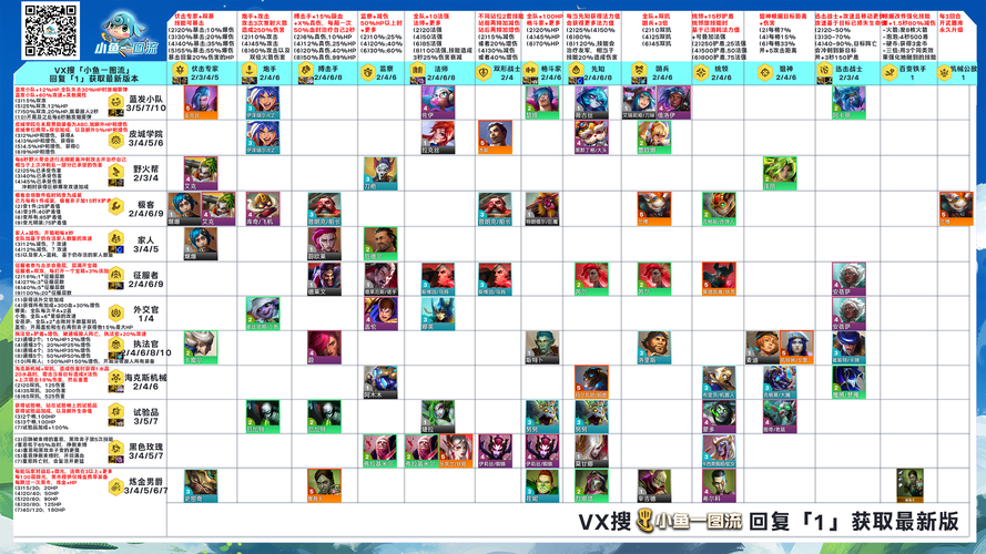 灵罗娃娃羁绊:战斗开始时,友军在邻格中获得持续8秒的圣霭,提供33%的伤害减免,但离开后效果消失。3复生亡魂羁绊:阵亡后,英雄以25%生命值复活,并提升25%的伤害和被伤害效果。2秘术师羁绊:所有友军获得40魔法抗性,提升法术防御能力。2复苏者羁绊:每秒回复4%最大生命值,生命值满时则回蓝。