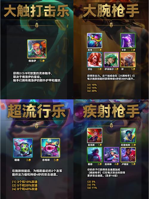 总的来说,辛迪加羁绊在金铲铲之战中确实是一个非常值得玩家探索和运用的强大羁绊。它不仅提供了强大的生存能力和回复效果,还能与其他羁绊和英雄形成多种多样的战术组合,使得玩家在游戏过程中有更多的策略选取和乐趣。