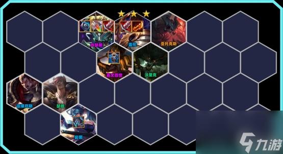 盖伦的物理伤害配合龙王的法术伤害可以做到启动清屏的效果。莫甘娜提供双抗减免,所以这套阵容可以不做轻语、电刀等破抗装备。后续推荐不要升9,而是在8人口一直D三星的盖伦和龙王,如果剑魔来得比较多也可以追三星的剑魔。