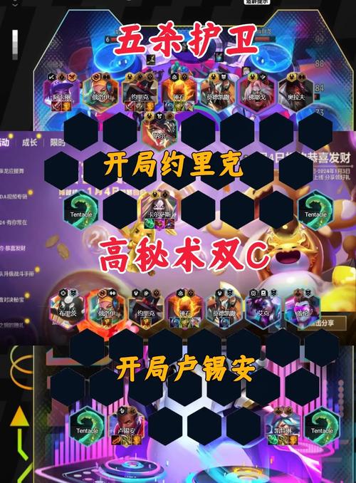 - **主C豹女**:『青龙刀/法爆/科技枪』。科技枪提供续航,青龙刀加速启动,射手弹射加速技能释放。无尽法爆替代亦可。- **副C烬**:『无尽/旗帜』。烬是优秀输出棋子,输出装充足时优先给予。旗帜提高后排射手攻速。- **副C嘉文四世**:『偷偷』。