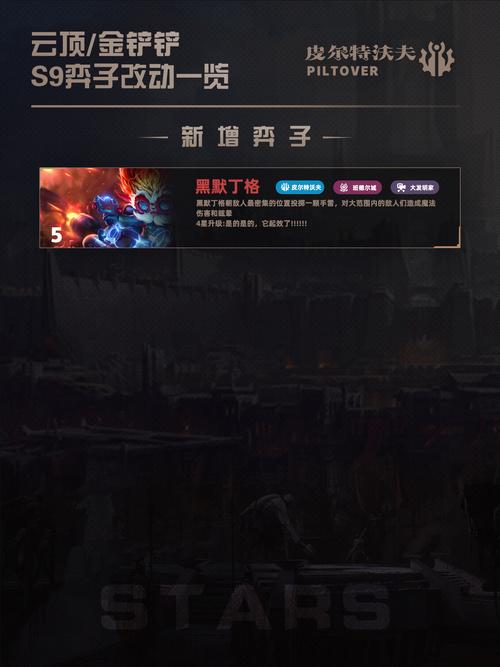 〖Four〗、在金铲铲之战的游戏中,s5赛季的更新日期为2023年3月28日,更新的具体时间是从凌晨0点到上午12点。这个赛季的主题是“怪兽入侵铲铲市危机”,在更新中加入了6版本的新内容,如图所示。此次更新不仅丰富了游戏内容,还引入了一些新英雄和新装备,玩家可以在游戏中体验全新的冒险旅程。