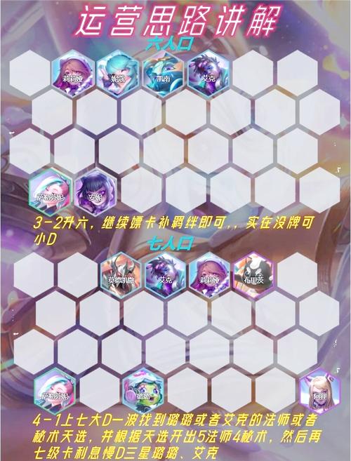 〖Two〗、或者直接根据所给的转职纹章来确定后期的阵容。最后一套阵容是由诺姆希、狼人、兰博、龙女、金克斯、慧和乌鸦组成的,这个阵容也可以开出七个羁绊,它们分别是二龙族、二重装、二猎手、三冰霜、二强袭、二换形以及二强袭射手。这套阵容虽然需要三张三费棋子组成,没有前面两个阵容那样好追出七个羁绊。