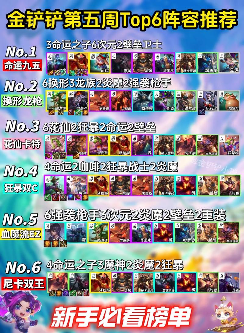 〖Two〗、金铲铲之战S5最强阵容推荐t0阵容:黑魔枪核心:卢锡安/金克斯玩法两种:同行少,七级开d,d出三星乌鸦,卢锡安,薇古丝后即可吃鸡,7人口成型,8人口大成,羁绊组成三约六黑魔二抢手,有黑魔转可换掉飞机组成8黑魔卢锡安,大顺风可上九在上个金克斯。