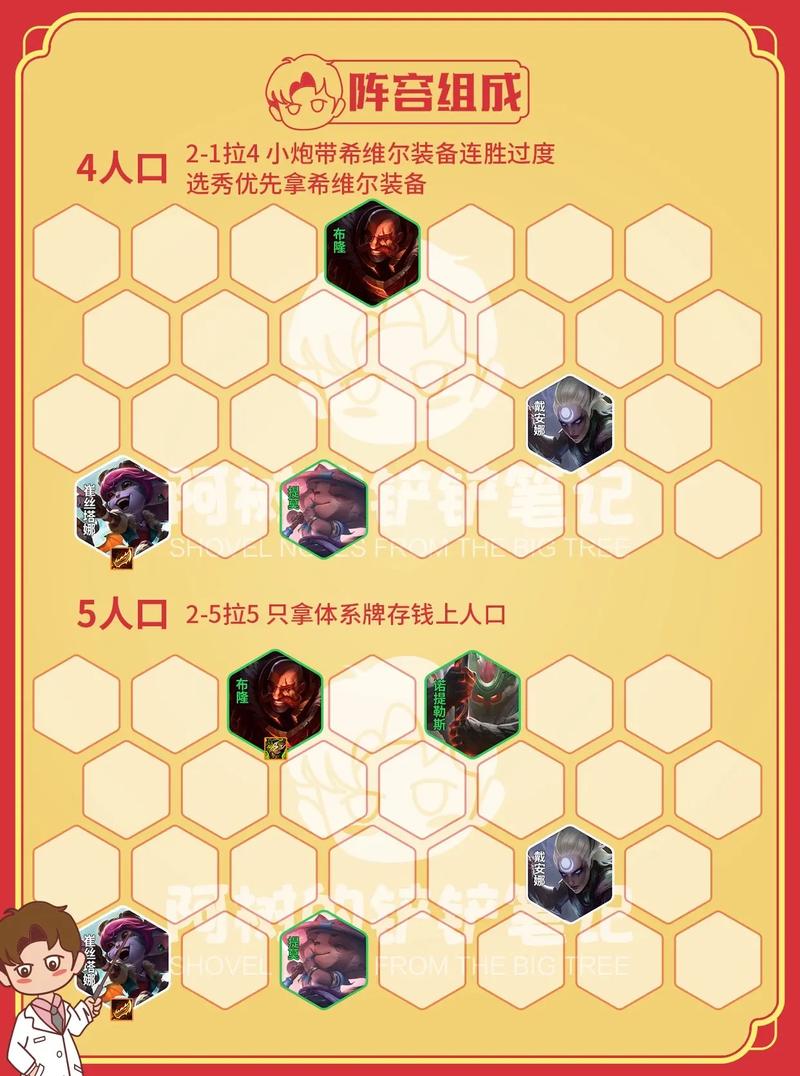 〖Six〗、阵容组成:卡莎、艾希、莫甘娜、安妮、诺提勒斯、李青、奥恩、慧。慧用来追三星四费,决赛局可换成加里奥。强化符文:必备卓尔不群,只要登场的弈子无激活的羁绊,就会获得攻速和最大生命值加成。其他拿:打气,提供额外攻速加成。变废为宝,可将成装重铸为随机的神器,提升阵容上限。