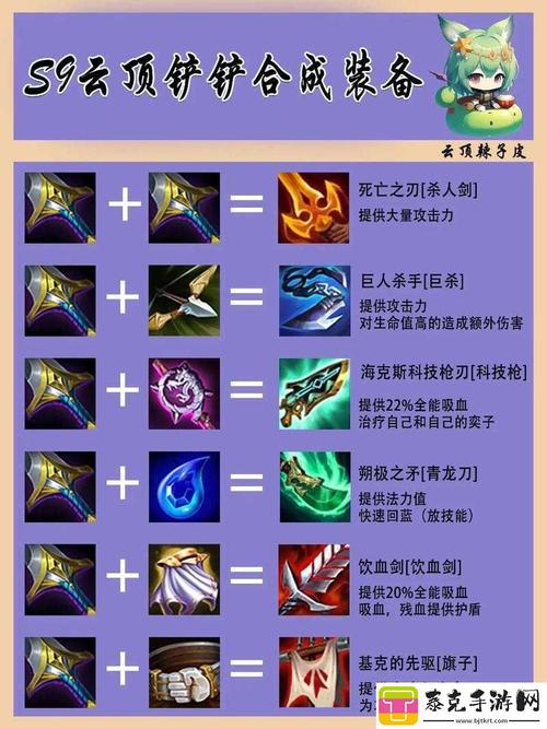 如死亡后可以复活的“复活甲”一次攻击可以同时发射攻击多个敌人的“分裂弓”等。金铲铲装备是一个“万能”装备,两件“金铲铲”可以为我们合成“自然之力”增加人口,而一件“金铲铲”与其他小件装备,则可以助力我们的棋子额外获得一个“羁绊属性”。