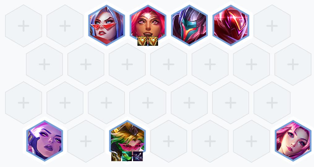〖Six〗、站位一:卡莎和薇恩站一起集火输出,尼菈站锐雯旁边回血,瑟庄妮对位敌人以控制更多人,厄运小姐站另一边分散AOE伤害。站位二:注意防范黑客劫等英雄直接跳脸卡莎或薇恩,确保输出核心的安全。装备推荐:优先攻速:该阵容依赖攻速装备,卡莎若无羊刀可用青龙刀代替。