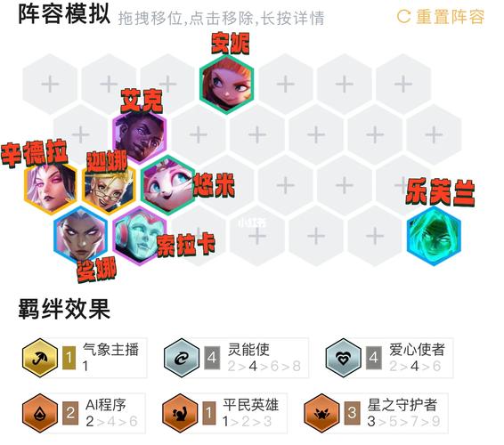〖Four〗、在金铲铲之战中,并不存在绝对最强的羁绊或英雄,而是需要根据实际情况灵活搭配。当前版本中,表现较为出色的两大羁绊是幽影龙和幻境龙。幽影龙阵容推荐4幽影龙、3驯龙大师和3秘术师的组合。这套阵容不仅包含了三位驯龙大师,还搭配了稳定的输出英雄艾尼维亚和赛芬,它们都是当前版本中上分的好帮手。