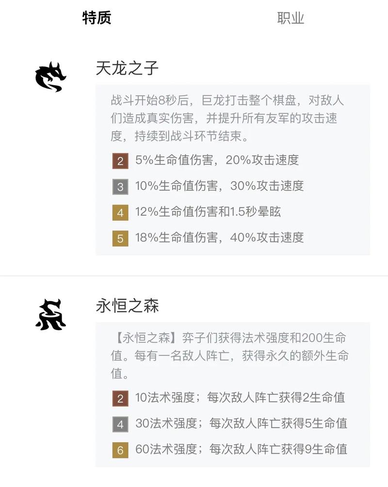 〖One〗、金铲铲之战天选福星羁绊汇总如下: 山海绘卷:激活后,每个山海绘卷英雄的技能都会获得一个额外的强力效果,让战斗更加多变。 龙魂:率先受到伤害的龙魂英雄会获得巨龙赐福,属性大幅提升,并且每5次攻击都会发射一道龙焰爆裂,造成高额魔法伤害。