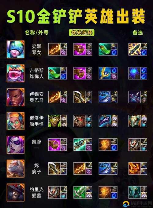 泰隆在《金铲铲之战》中的出装策略至关重要。基础出装包括海克斯科技枪刃与无尽之刃,这两件装备能够显著提升泰隆的输出能力。替代装备可考虑正义之手、巨人杀手和疾射火炮,这些装备在不同情况下能够发挥重要作用。