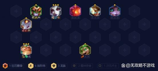 〖One〗、阵容羁绊:2个仙灵、2个龙珠、2个北地、2个护卫、2个游侠、2个换形师。阵容组成:迅箭、冰之箭、北地之盾、蛛后、星龙战神、逆鳞战姬。