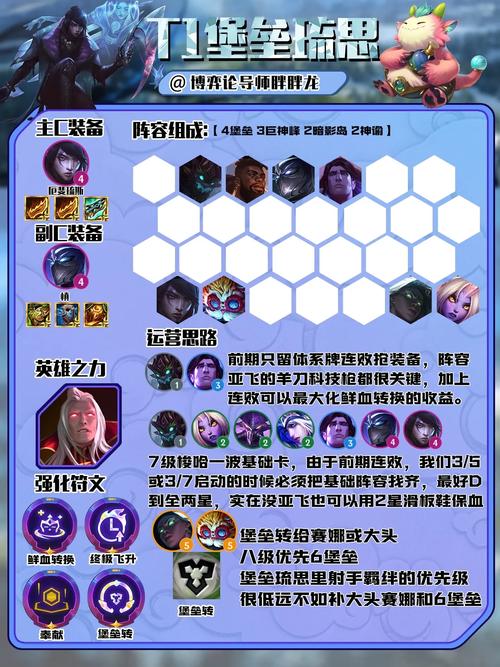 光明快攻流依靠极高的攻速和羁绊之间的治疗链接快速消耗对手,特别是在对方英雄数量减少、羁绊效果减弱时,更能体现高攻速带来的优势。注意在早期快速升级和寻找关键英雄来维持阵容的输出与生存平衡。金铲铲之战的胜利很大程度上取决于对羁绊的理解与运用。