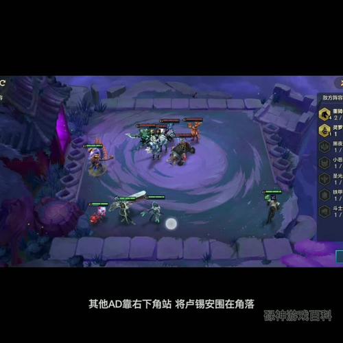 在第一关中,选取乌鸦阵容,海克斯选取原计划。为乌鸦提供科技枪和护甲,使其站在前排,站位如图所示。第二关中,选取阿卡丽,海克斯选取战争律动。新获得的装备蓝buff给予阿卡丽,反甲给大虫子。乌鸦和大虫子站在前排,其他角色站后排,站位如图所示。第三关中,选取莎弥拉塞恩,海克斯选取刺客之冕。