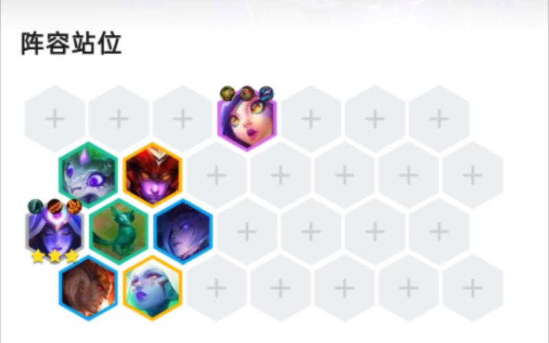 〖Four〗、后期:需要不断搜卡来提升阵容的整体星级和强度,并根据对手的阵容和装备来选取站位和调整装备。站位建议:- 豹女应站在后排安全位置以确保稳定输出。- 皇子和蔚等控制或坦克英雄需要站在前排,以最大化控制效果并吸收伤害。