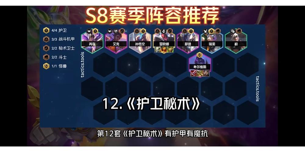 〖Three〗、最简单阵容 - 家人体系 弈子:娜美、斯维因、普朗克、范德尔、蔚奥莱、爆爆、德莱厄斯。羁绊:3家人、2双形战士、2搏击手、2极客、2法师、2监察、2铁血征服者、1外交官。优点:热门开局,前期战力有保障,适合3-2时看到羁绊追踪者时转型。