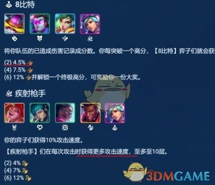 〖Three〗、在S8赛季中强势的羁绊效果是非常多的,比如登场率超高的精英战士,羁绊效果氛围1/4,也就是说想要激活该效果,要么上1精英奕子凑出羁绊,要么上4名奕子,3名精英奕子是只会触发1精英效果的,5名也只会触发4精英。