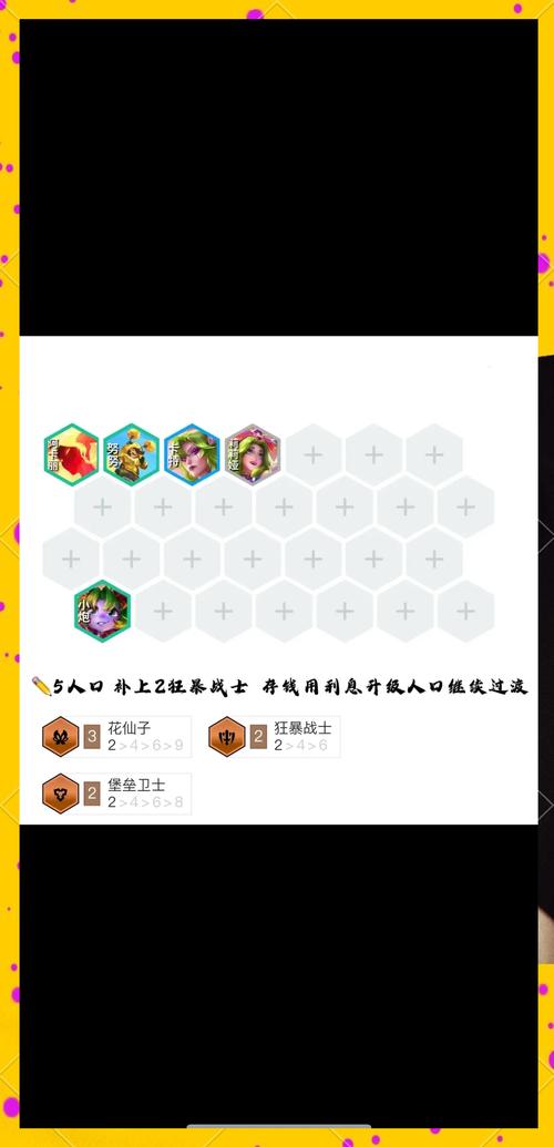 〖Two〗、灵活选取阵容:根据发牌员给的牌和装备,灵活选取阵容,不要强行玩某个阵容。 经济管理 合理存钱:每回合存够50金币可以获得最大利息(5金币),优先保证经济健康。适时升级:在关键回合(如2-3-4-1)升级人口,提升战力。