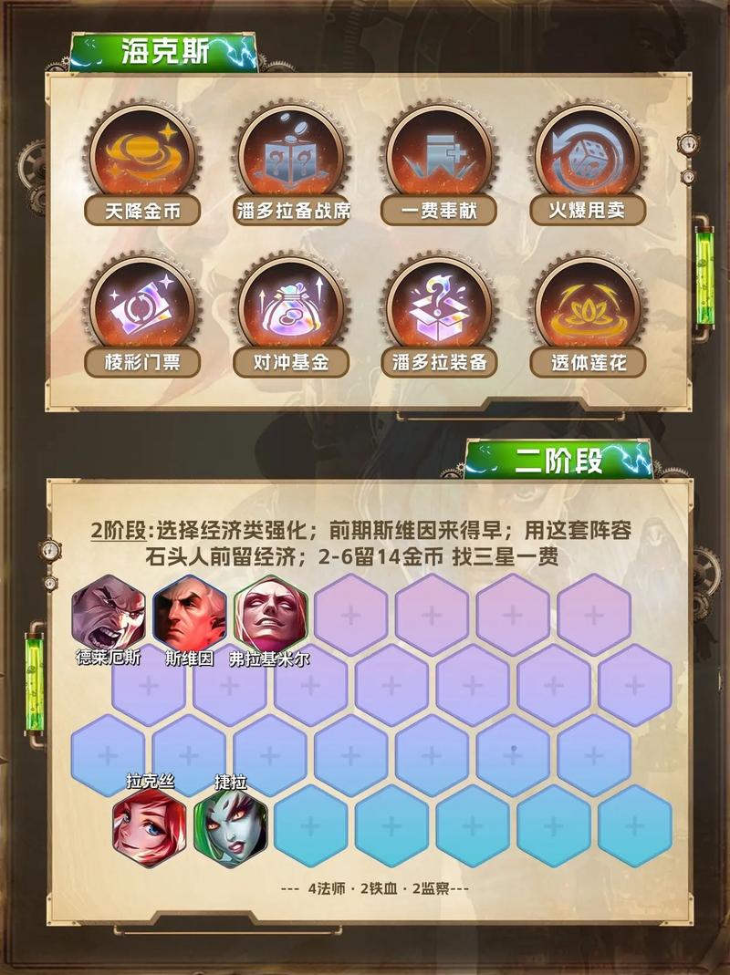冰沙亡眼阵容:这是厄斐琉斯的一个核心阵容,主要依赖亡眼射手的羁绊来提升厄斐琉斯的输出能力。同时,你可以搭配其他合适的英雄和装备来增强阵容的整体实力。大成九五阵容:当游戏进入后期,你可以考虑转型为大成九五阵容,即包含多个五费英雄的阵容。