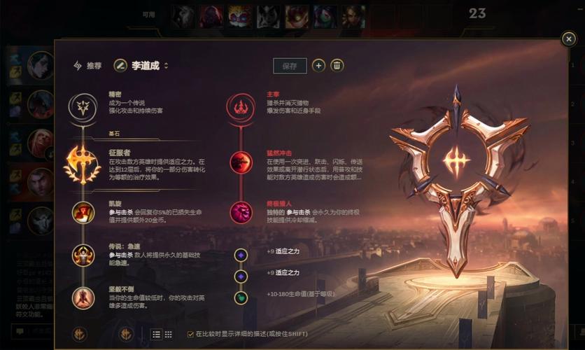 〖Three〗、剑魔推荐装备:泰坦的坚决、巨人杀手、饮血剑。其他提升物理输出以及吸血能力的装备也可以搭配使用。剑魔的羁绊是暗裔、杀手。技能开启后10s内会变身且获得全能吸血,额外的攻速转化为攻击力,变身期间会使用三段Q攻击敌人。