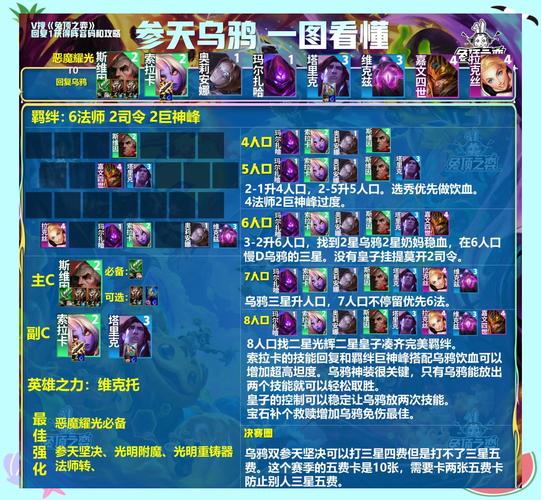 运营过程中,4阶段应关注三星英雄的数量与质量,决定是否升级至6决斗与3超级英雄的组合。如果有决斗纹章,应优先构建8决斗羁绊。在8人口时,根据三星英雄的数量与是否拥有决斗纹章,选取补充5费卡以提升队伍整体质量,或考虑构建3超级英雄与6决斗的组合。