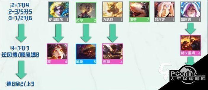 阵容推荐:选用沙皇、狗头、拉克丝、皇子、盖伦、斯维因、提莫、岩雀,构建羁绊为4司令、3恕瑞玛、3德玛。 强化符文选取:首选潘多拉的装备,鲜血转换,部分飞升;次选战斗准备2,源计划巨块2。