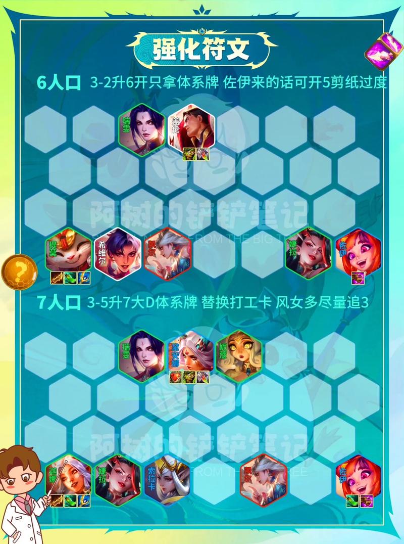 在布置棋盘时,要注意不同棋子之间的搭配。例如,在5人口时,可以上场佐伊、杰斯、小炮、兰博和加里奥,这样的组合可能凑成3次元术士、2重装战士和2强袭枪手等羁绊。当人口提升到7人时,通过添加巴德和妮蔻,可以进一步凑成更多的羁绊,如2咖啡甜心、2诅咒女巫等,直至达到七个不同的非唯一羁绊。