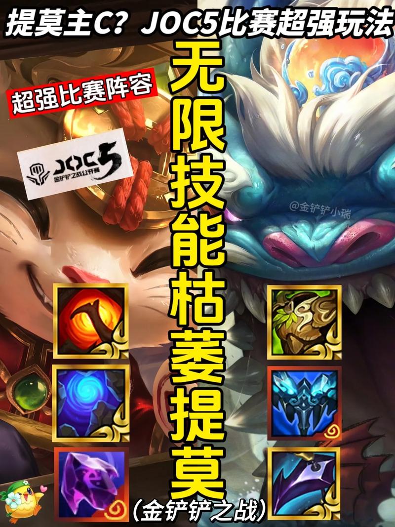 金铲铲之战S9术士提莫阵容,这样搭配准没错!阵容组成:提莫、波比、克烈、岩雀、皇子、脆皮鸡、琴女、维克兹。这些英雄能形成强力的羁绊,4术士、3司令、3约德尔人、3德玛西亚,让提莫发挥出最大实力。装备选取:主C提莫蓝霸服和法爆是必备的,能让提莫的技能释放更频繁且伤害爆表。