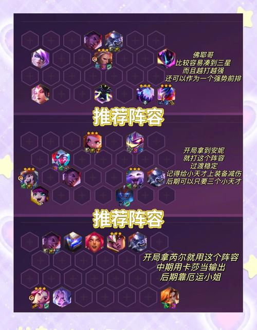灵活选取阵容:根据发牌员给的牌和装备,灵活选取阵容,不要强行玩某个阵容。 经济管理 合理存钱:每回合存够50金币可以获得最大利息(5金币),优先保证经济健康。适时升级:在关键回合(如2-3-4-1)升级人口,提升战力。