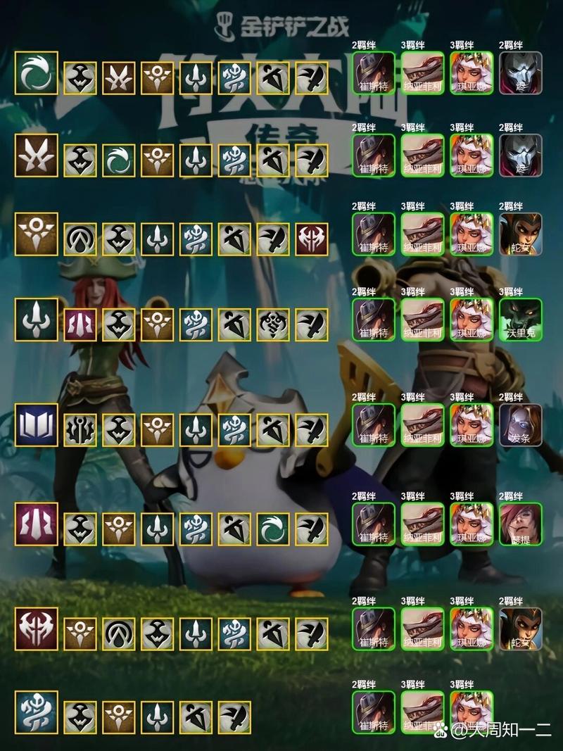 神盾战士羁绊:由奥拉夫、贾克斯、刀妹、李青、奈德丽、乌迪尔、凯南、佛耶戈、芮尓9人搭配而成。铁架卫士羁绊:由贾克斯和芮尓搭配而成。阵容核心英雄装备。站位。云顶之巅,聚梦之所。