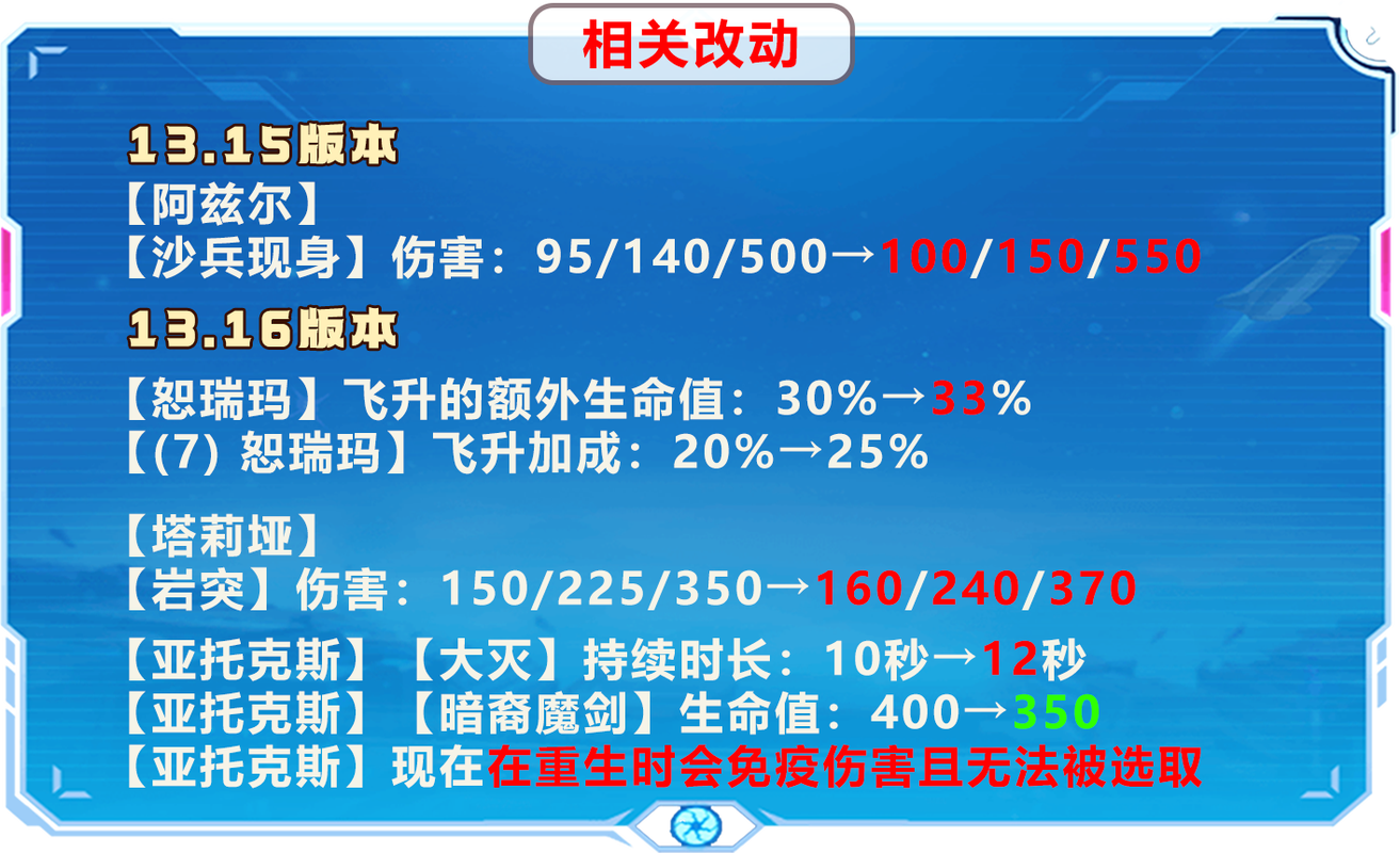 〖Three〗、阴森甲亮 当你的【暗影岛】羁绊处于激活状态时,你的弈子们会获得10护甲和度抗,你在这场战斗中每阵亡一个已方弈子,这个加成就会提升5,提供1个【佛举戈】。 1吾剑听命于您 提供1个【暴风大创】,你的单位们获得20%攻击力。