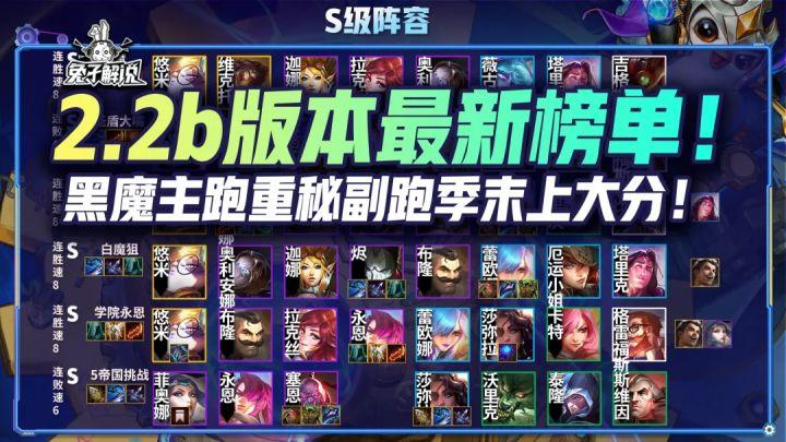 金铲铲2.2b版本排名榜!黑魔主跑重秘副跑!季末上大分!