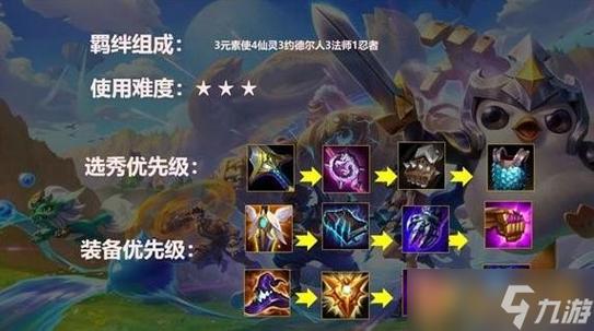 〖Four〗、本属于金鳞龙比较多能够加到7个,所以额外需要两个金鳞龙纹章,由铲子和大剑合成。上7人口后,找到金鳞龙属性的龙神:艾达丝,推荐用拿肉装打工。8人口或者选秀拿到佐伊即可凑够9金鳞龙,9人口后推荐用亚索、巴德转金鳞龙,霞配羊刀打输出赚钱。