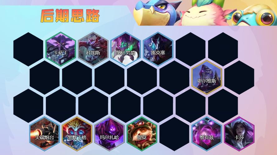中期阶段,要注意阵容的站位和英雄的星级提升,保证关键英雄的生存能力和输出环境。在后期决战中,要注意敌方关键英雄的位置,合理调整我方英雄的站位,以便更好地发挥刺客羁绊的跳转攻击优势。总的来说,金铲铲之战虚空刺阵容需要灵活调整英雄和装备的选取,以适应不同的战斗情况。