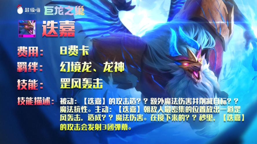 〖One〗、金铲铲之战S10天选福星八斗龙女阵容搭配方法如下: 阵容介绍- 羁绊组成:龙女龙魂天选,8斗士,3龙魂。- 阵容特点:龙女天选效果是直接变身,搭配高斗士超肉的前排,后期还有腕豪这个斗士大杀器。此外,这套阵容和轮子妈阵容装备通用,互通能用的卡也比较多,可以灵活转换。