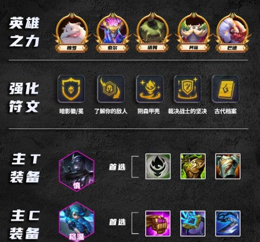 〖Two〗、**挑战**:前期主C狼人,后期增加蝙蝠吸血刀提升续航能力。 **暗影格温**:利用格温的强大能力,与其他羁绊结合。 **佛雷转**:利用佛雷的强大羁绊提升阵容强度。1 **神谕**:以卡尔玛为核心,搭配其他英雄形成强力神谕阵容。二:经济运营 金币管理是金铲铲的关键。
