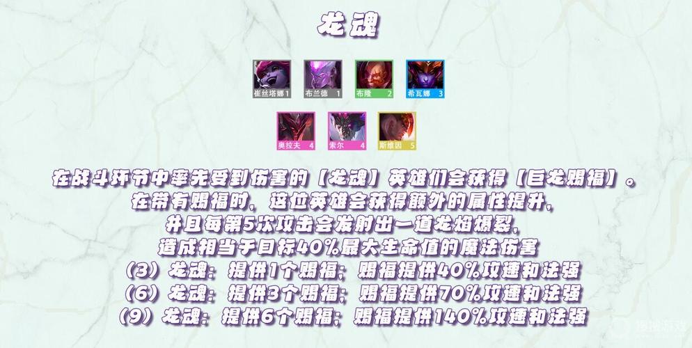 〖Five〗、金铲铲之战天选福星羁绊汇总如下: 山海绘卷:激活后,每个山海绘卷英雄的技能都会获得一个额外的强力效果,让战斗更加多变。 龙魂:率先受到伤害的龙魂英雄会获得巨龙赐福,属性大幅提升,并且每5次攻击都会发射一道龙焰爆裂,造成高额魔法伤害。