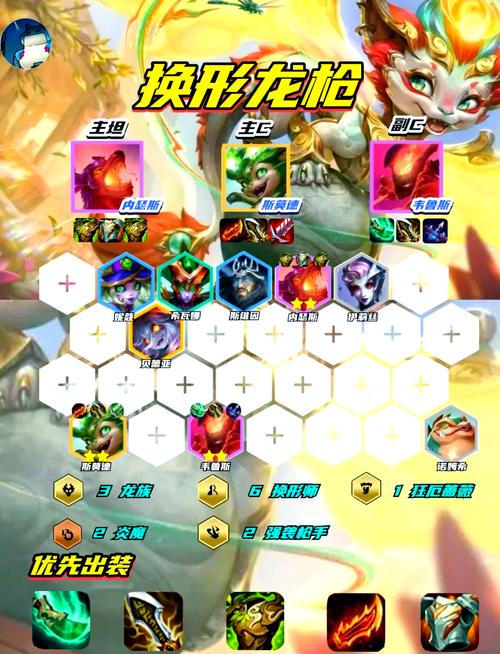 在金铲铲之战中,6换形师阵容的搭配需要一定的策略和技巧。首先,我们要了解这个阵容的具体构成,以确保选取正确的英雄。主要英雄包括:西斗之飒蛛后、未来守护者、逆鳞战姬、凤黯、南天之怒、齐天大圣和星界龙神狻猊之心。
