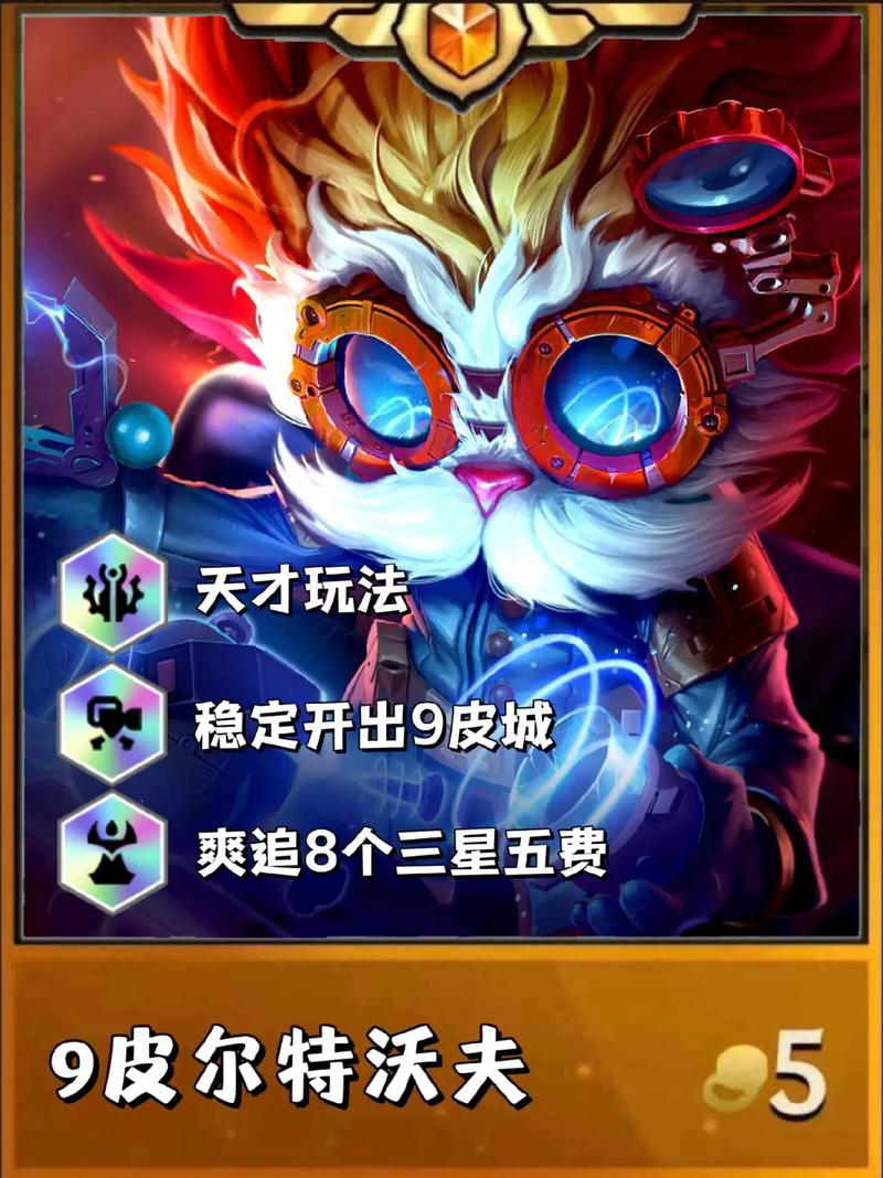 通过海牛阿福获得两个皮尔特沃夫的转职纹章,尽快凑齐6皮城连败攒霸王龙的层数,层数攒的越多战利品越丰厚,如果血卖多了泽丽到2星即可锁血,速升九,然后提升阵容的质量收菜走向高光时刻,开出战利品之后就可以转成九五阵容了。