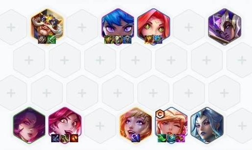 〖Two〗、棋子及羁绊如图所示 装备分析后排装备羊刀直接做(羊刀过渡平滑且多个运营阵容能用。例如重秘、阿卡丽过渡装。)前排龙牙反甲狂徒(首先是所有阵容的通用防装,其次8战斗在8人口只有1个前排没有保镖羁绊的前提下,给日女做这三件装备能保证杰斯的有效输出环境)。阵型站位日女单顶。