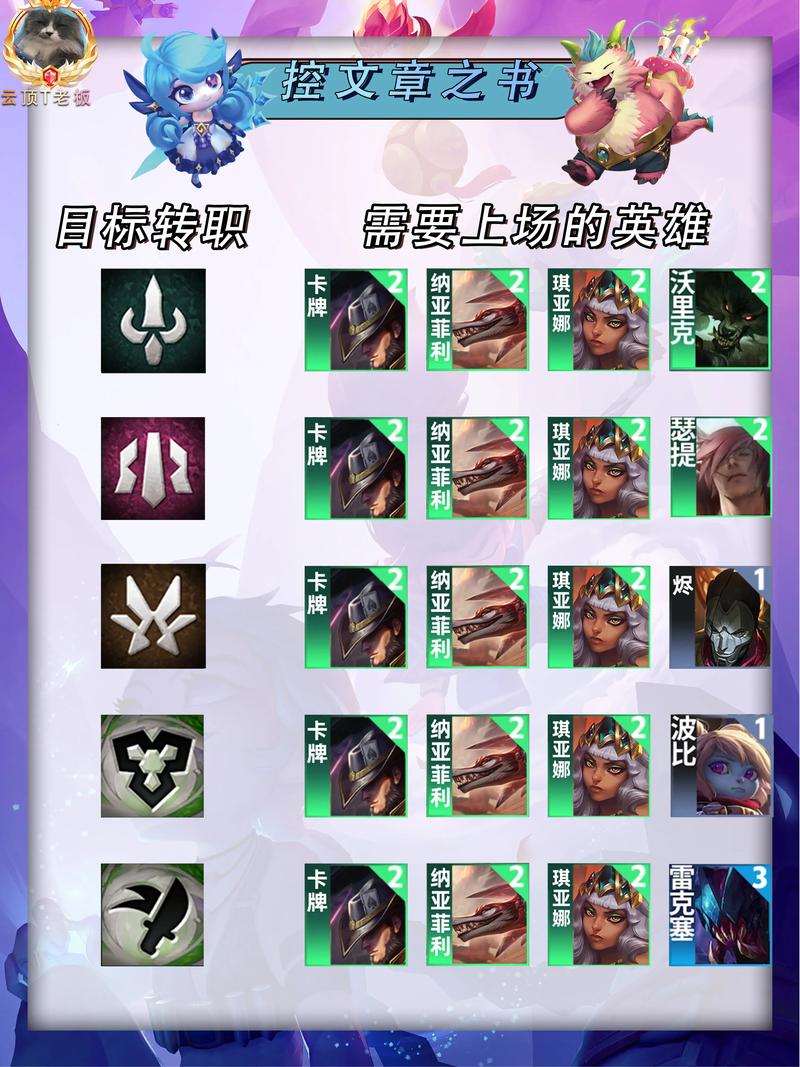 〖Four〗、羁绊棋子:斯莫德、克格莫、璐璐、拉莫斯。战斗学院:效果:战斗学院弈子们升级其技能并获得潜能,潜能可改进其技能。羁绊棋子:蕾欧娜、悠米、杰斯、凯特琳、卡特琳娜、盖伦、伊泽瑞尔。此外,还有霸天机甲(暂译)等羁绊,具体效果可能以游戏内实际体验为准。