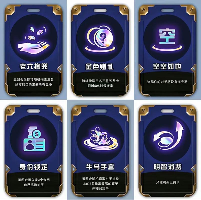 窃贼帮派:能够提供额外的装备和金币,极大增强前期战斗力。新人入队:为队伍提供额外的英雄,增加阵容灵活性和战斗力。升级咯:快速升级人口,提高阵容上限。前进之路:提供额外的经验值,加速升级过程。羽量级III:为低费卡提供额外攻速,适合赌狗阵容。短兵III:增加前排攻击力,提升战斗效率。