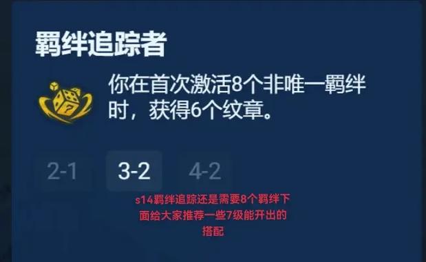 〖Two〗、购买赛季通行证:赛季通行证是获取额外资源和奖励的快捷方式,购买后可以通过完成任务和挑战来快速积累经验和奖励,从而加速羁绊追踪者的开启和升级。最大化利用羁绊追踪者 合理规划阵容:根据羁绊追踪者提供的建议,合理规划自己的阵容,确保每个英雄都能发挥最大的作用。